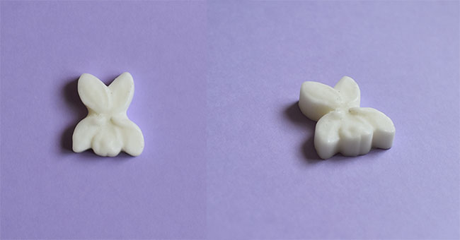2,9 cm x 1,5 cm (0,7 cm d’épaisseur) : 25€ le moule de 4 empreintes